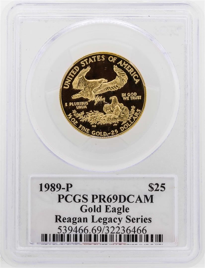 One 1989-P $25 American Gold Eagle Proof Coin PCGS PR69DCAM Reagan Legacy Series. PCGS Graded.