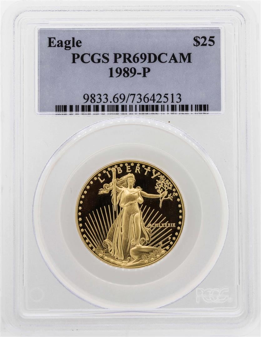 One 1989-P $25 American Gold Eagle Proof Coin PCGS PR69DCAM. PCGS Graded.