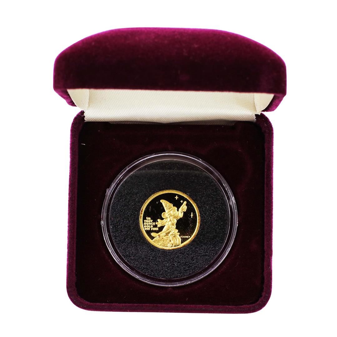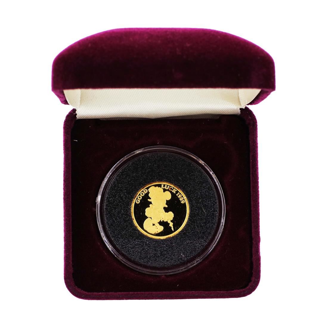 One 1989 Rarities Mint Disney Mickey Good Luck 1/4 Oz. Gold Coin w/ Box.