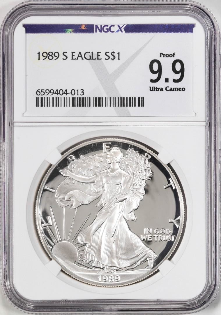 One 1989-S $1 Proof American Silver Eagle Coin NGCX Proof 9.9 Ultra Cameo. NGC Certified.