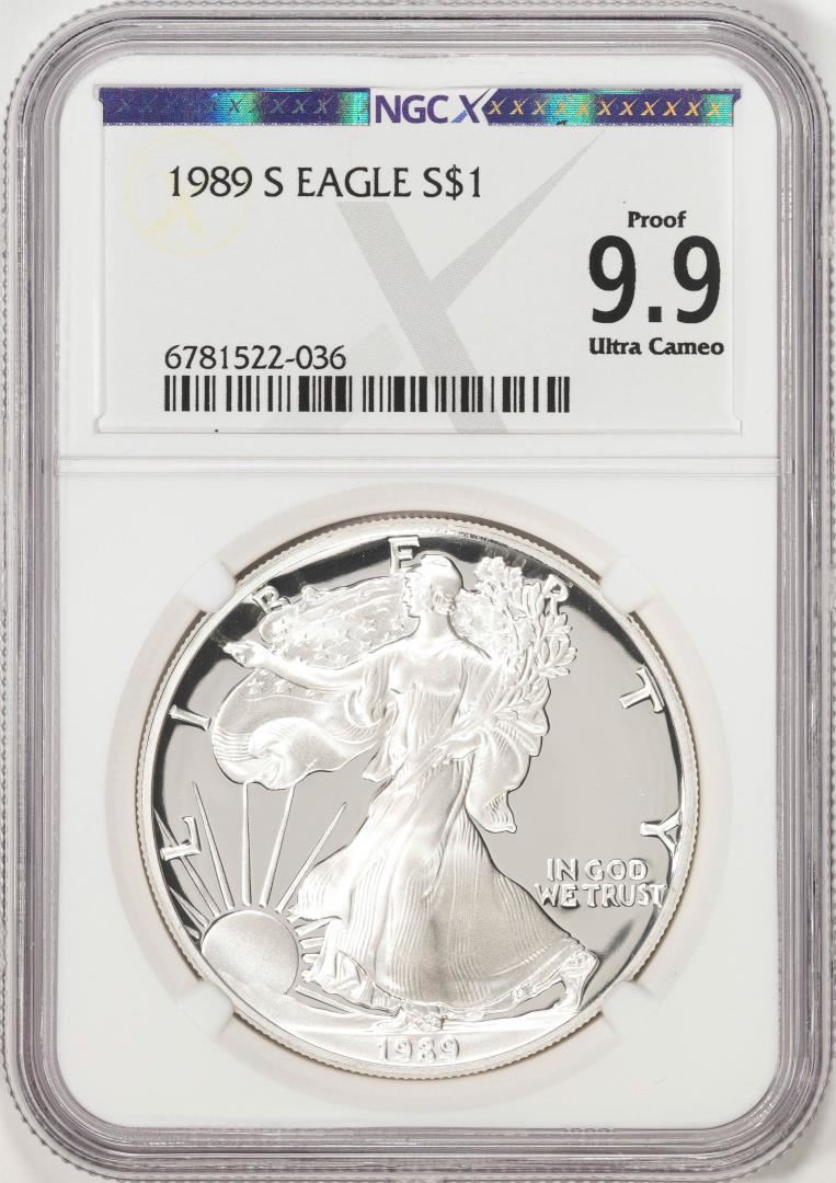 One 1989-S $1 Proof American Silver Eagle Coin NGCX Proof 9.9 Ultra Cameo. NGC Certified.