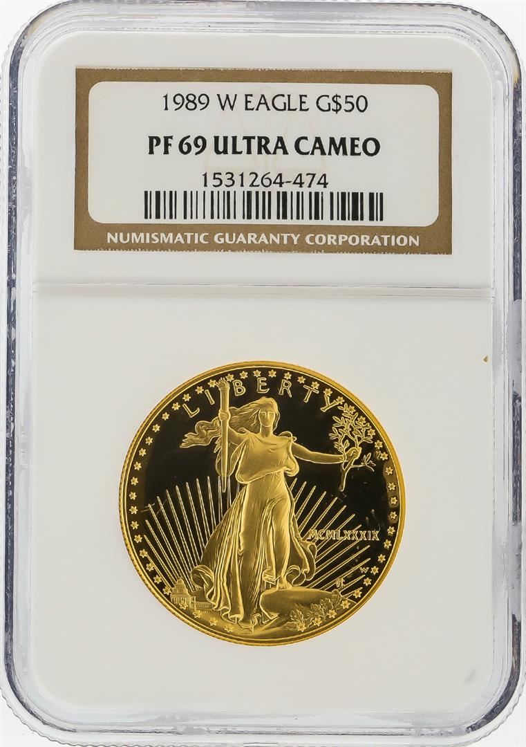 One 1989-W $50 American Gold Eagle Coin NGC Graded PF69 Ultra Cameo. NGC Certified.