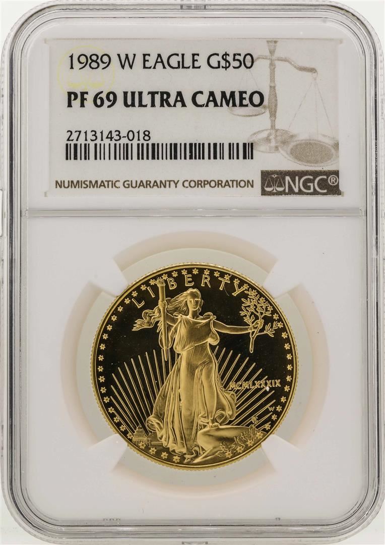 One 1989-W $50 American Gold Eagle Coin NGC PF69 Ultra Cameo. NGC Certified.
