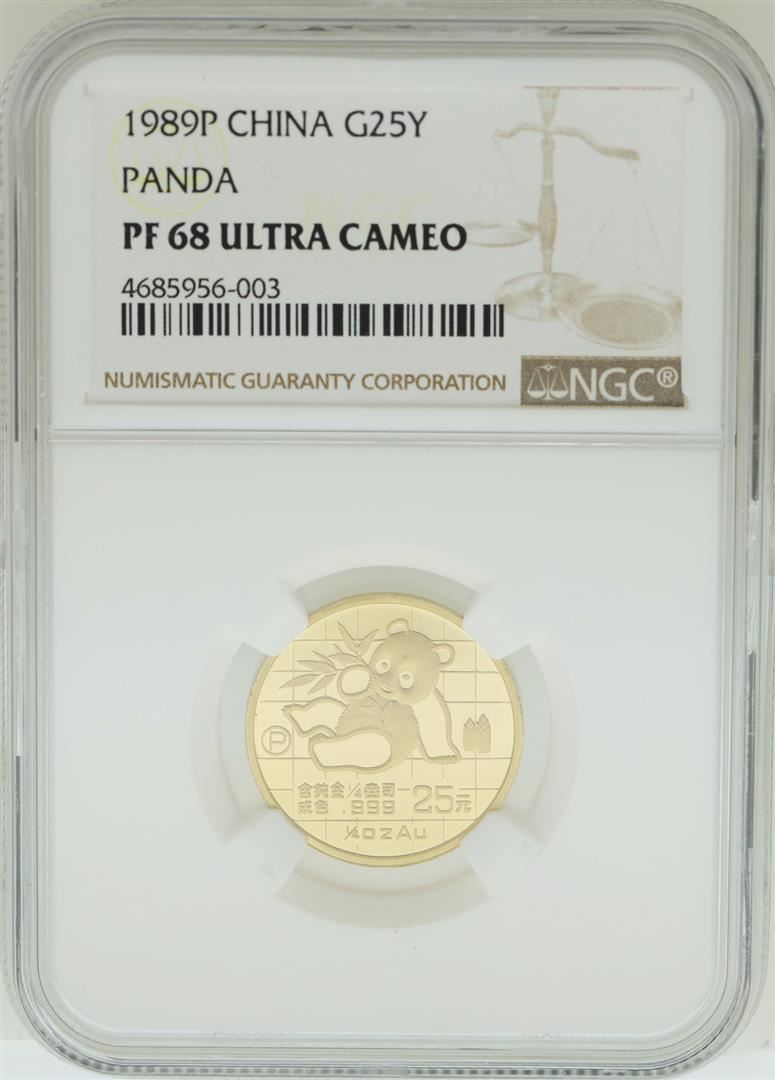 One 1989P China 25 Yuan Panda Gold Coin NGC PF68 Ultra Cameo. NGC Certified.