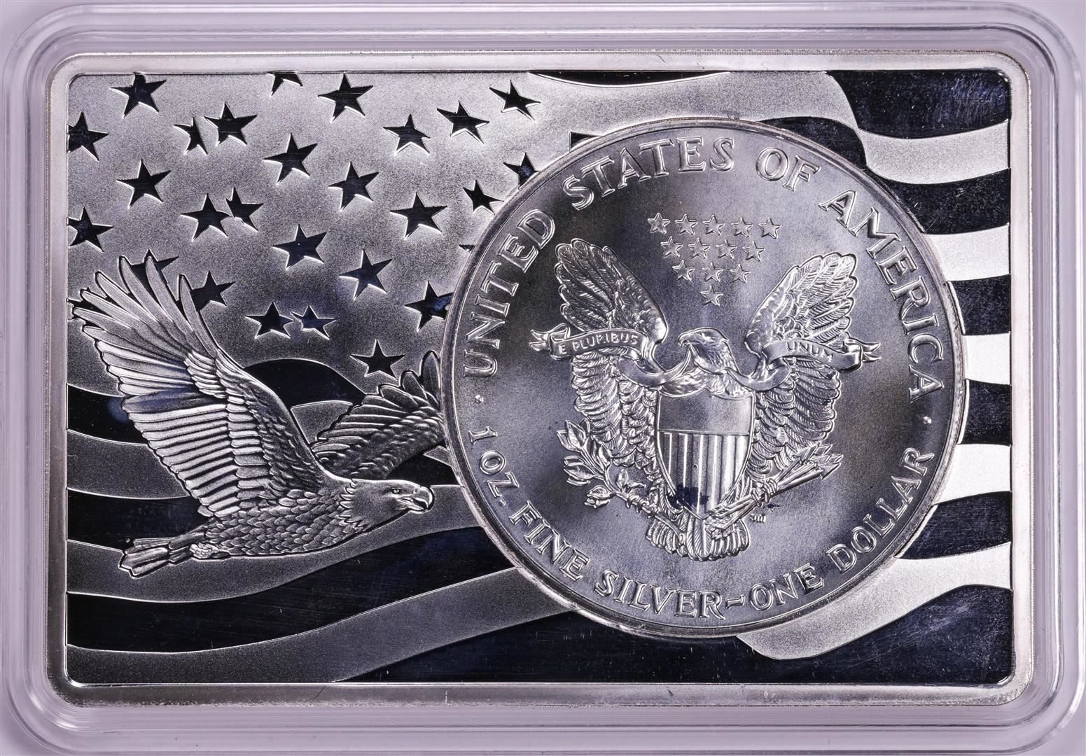 One 1990 $1 American Silver Eagle Coin & 2oz Silver Bar Set.