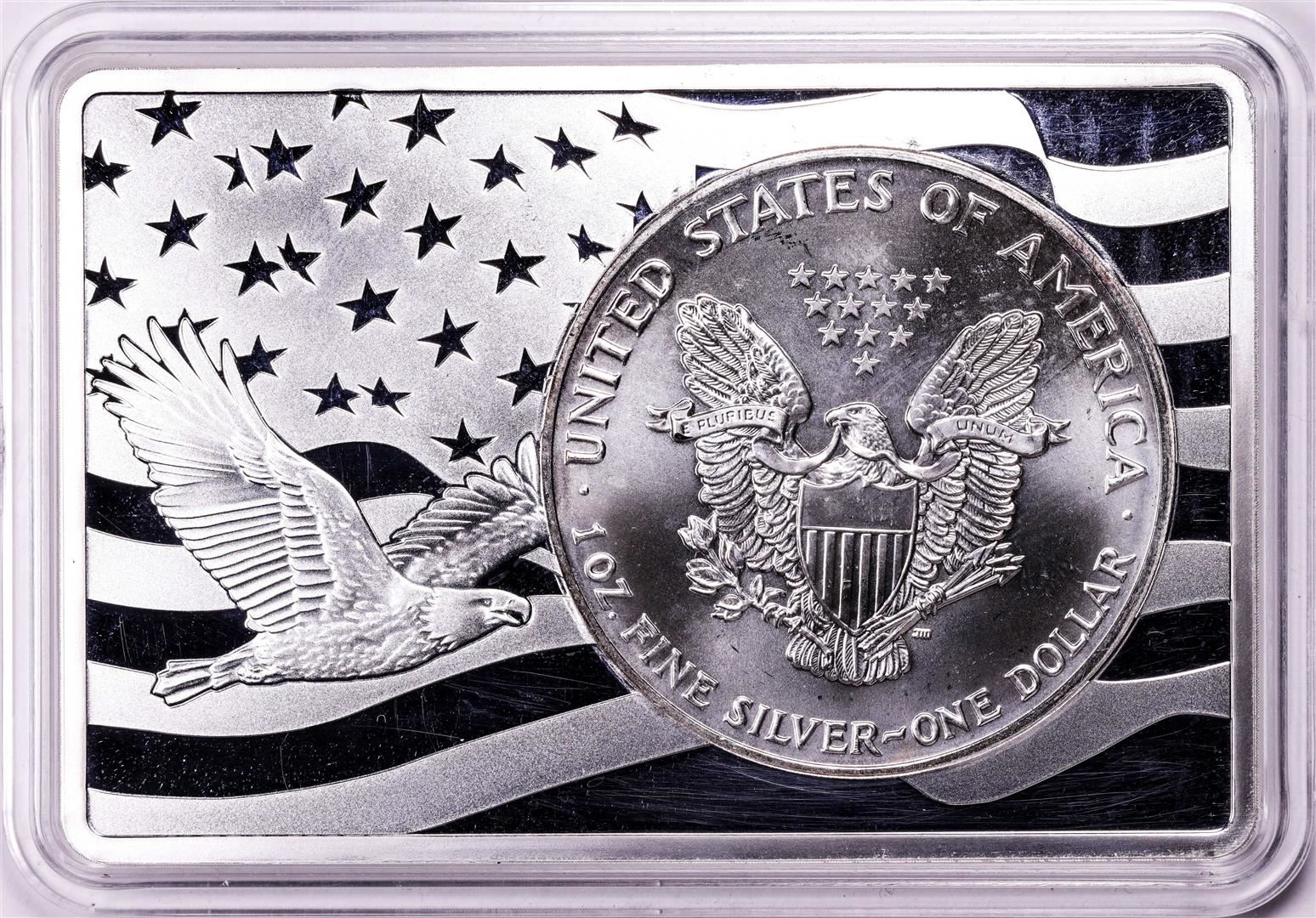 One 1990 $1 American Silver Eagle Coin & 2oz Silver Bar Set.