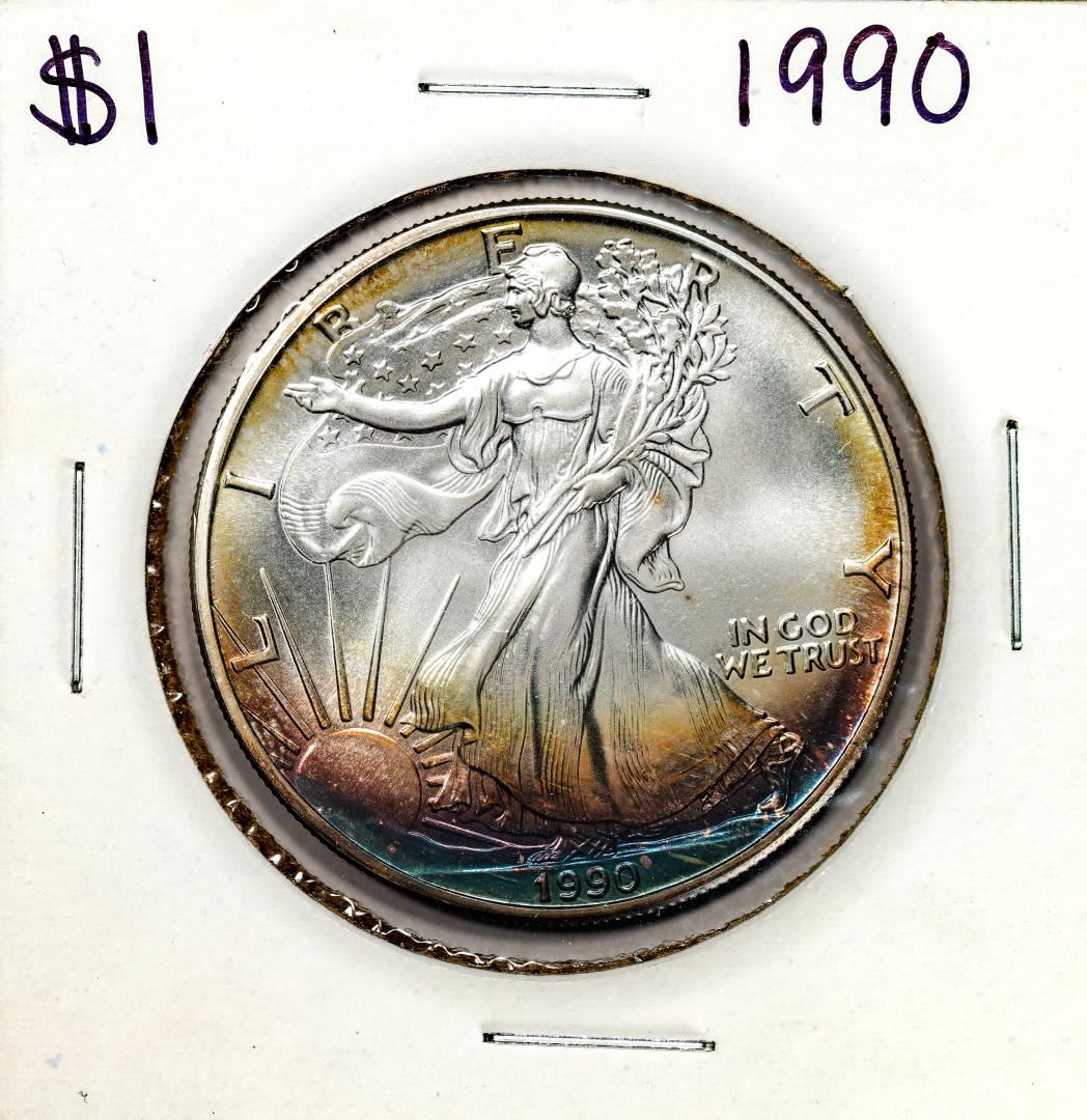 One 1990 $1 American Silver Eagle Coin Amazing Toning.