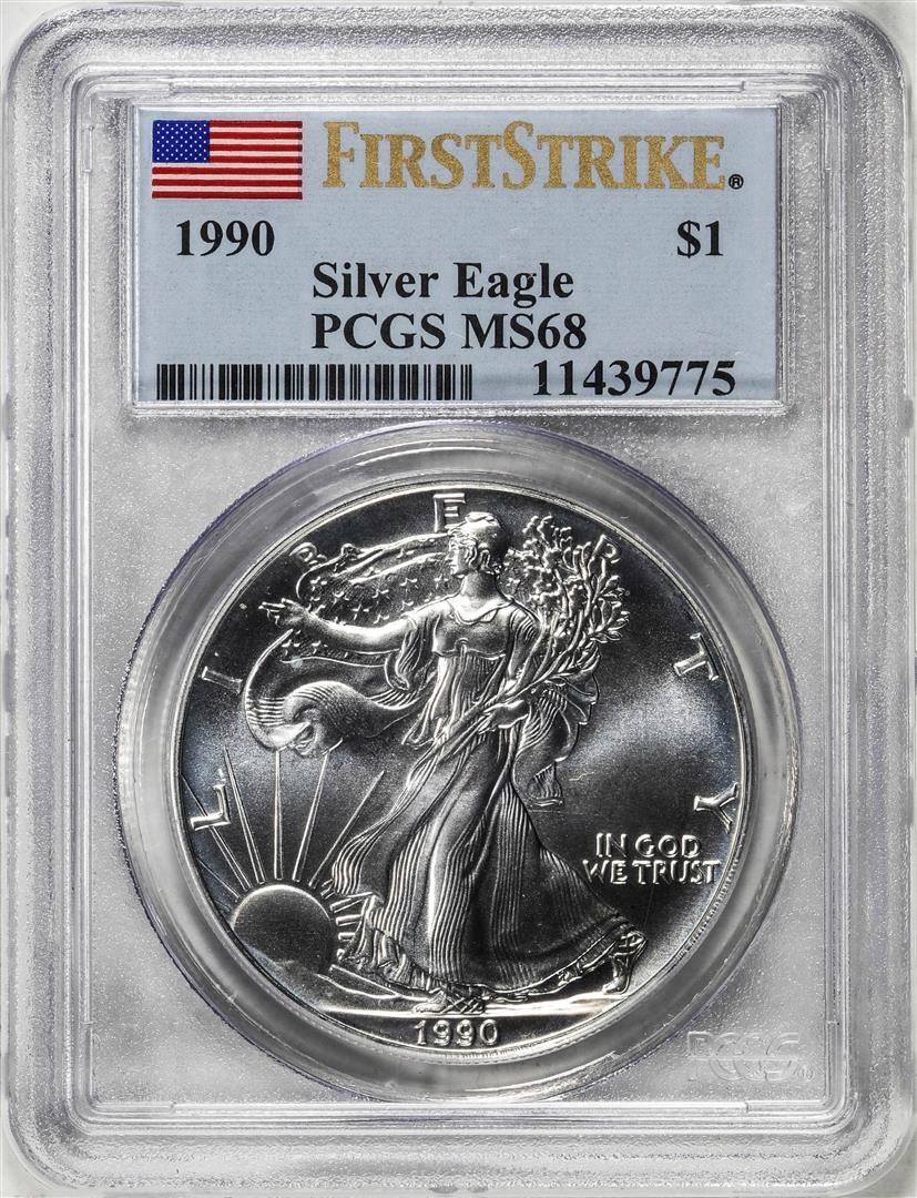 1990 $1 American Silver Eagle Coin PCGS MS68 First Strike