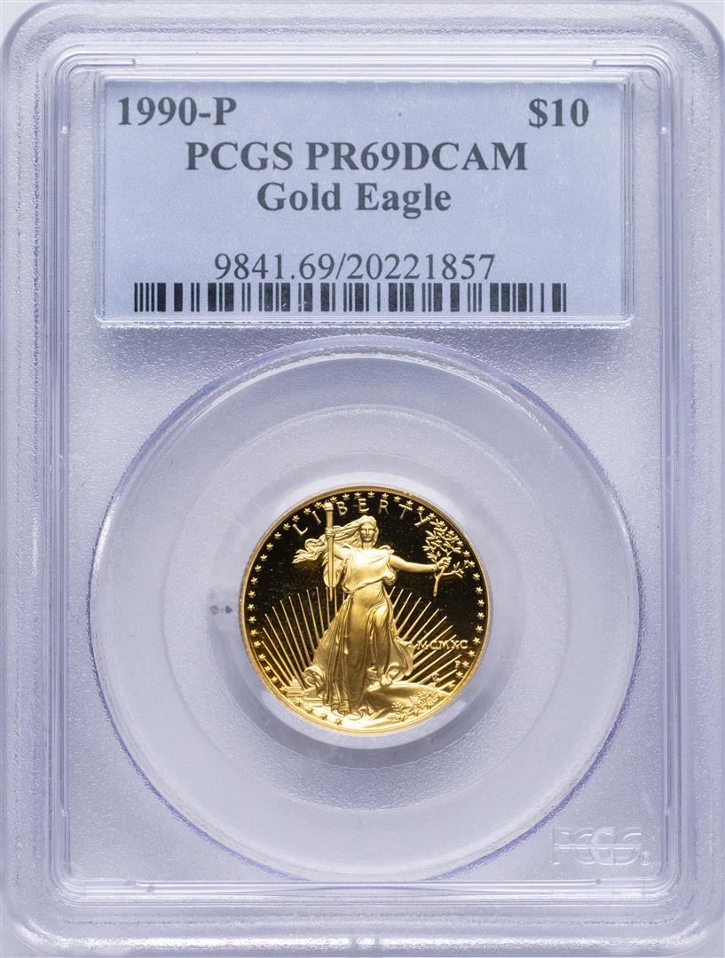 One 1990 $10 American Gold Eagle Proof Coin PCGS PR69DCAM. PCGS Graded.
