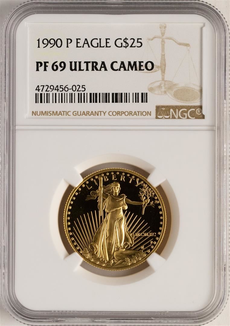 One 1990 $25 Proof American Gold Eagle Coin NGC PF69 Ultra Cameo. NGC Certified.