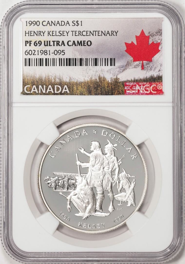 1990 Canada $1 Proof Henry Kelsey Tercentenary Silver Coin NGC PF69 Ultra Cameo