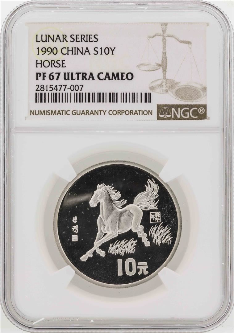 1990 China 10 Yuan Horse Silver Coin NGC PF67 Ultra Cameo