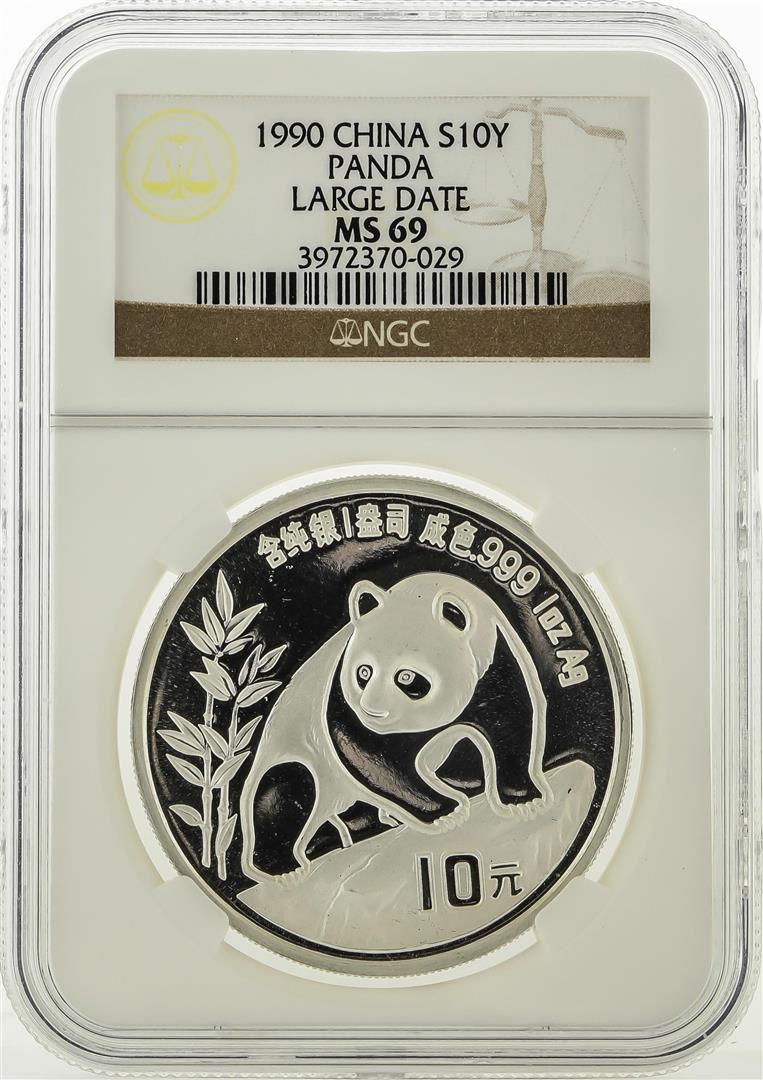 One 1990 China 10 Yuan Silver Panda NGC MS69. NGC Certified.