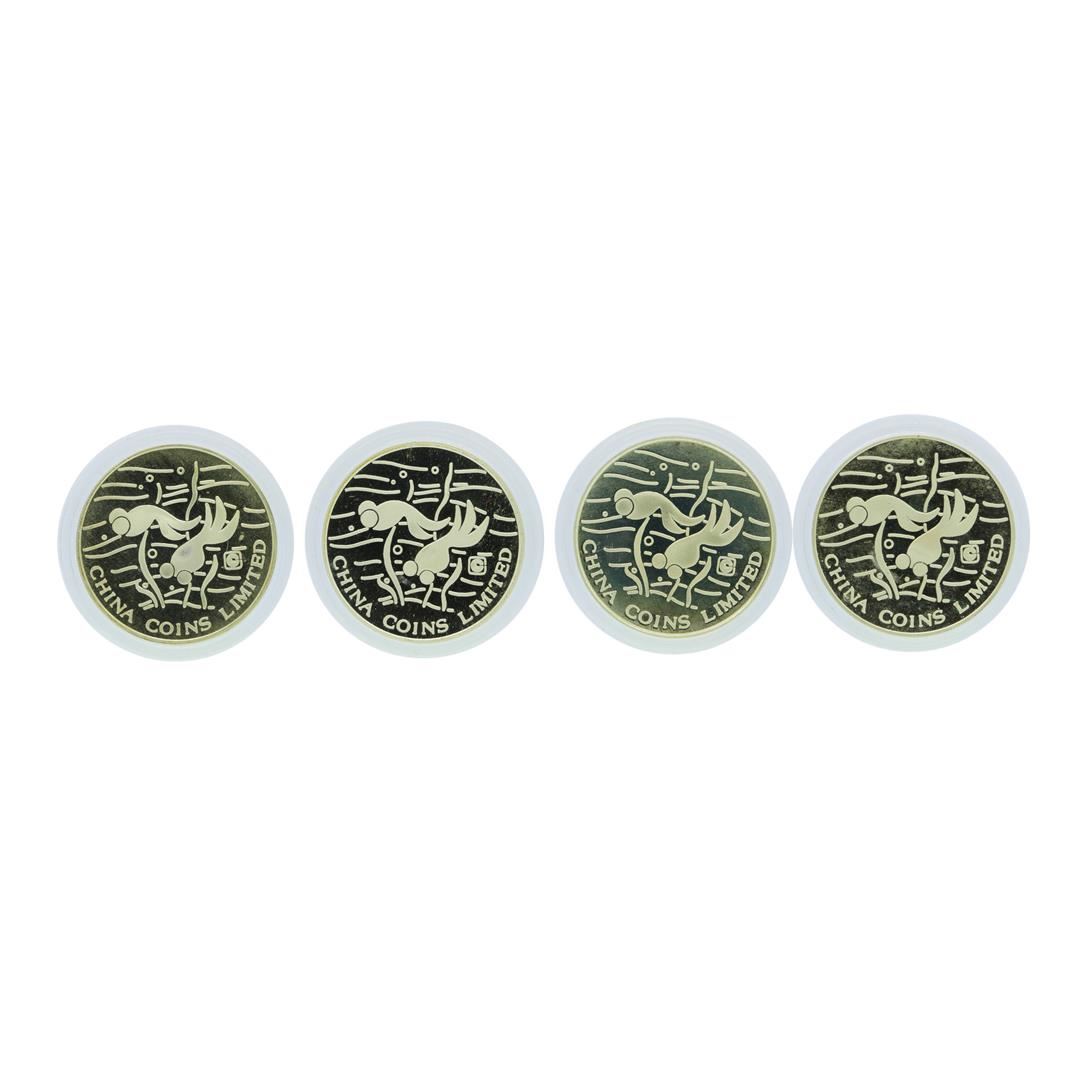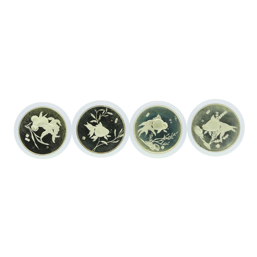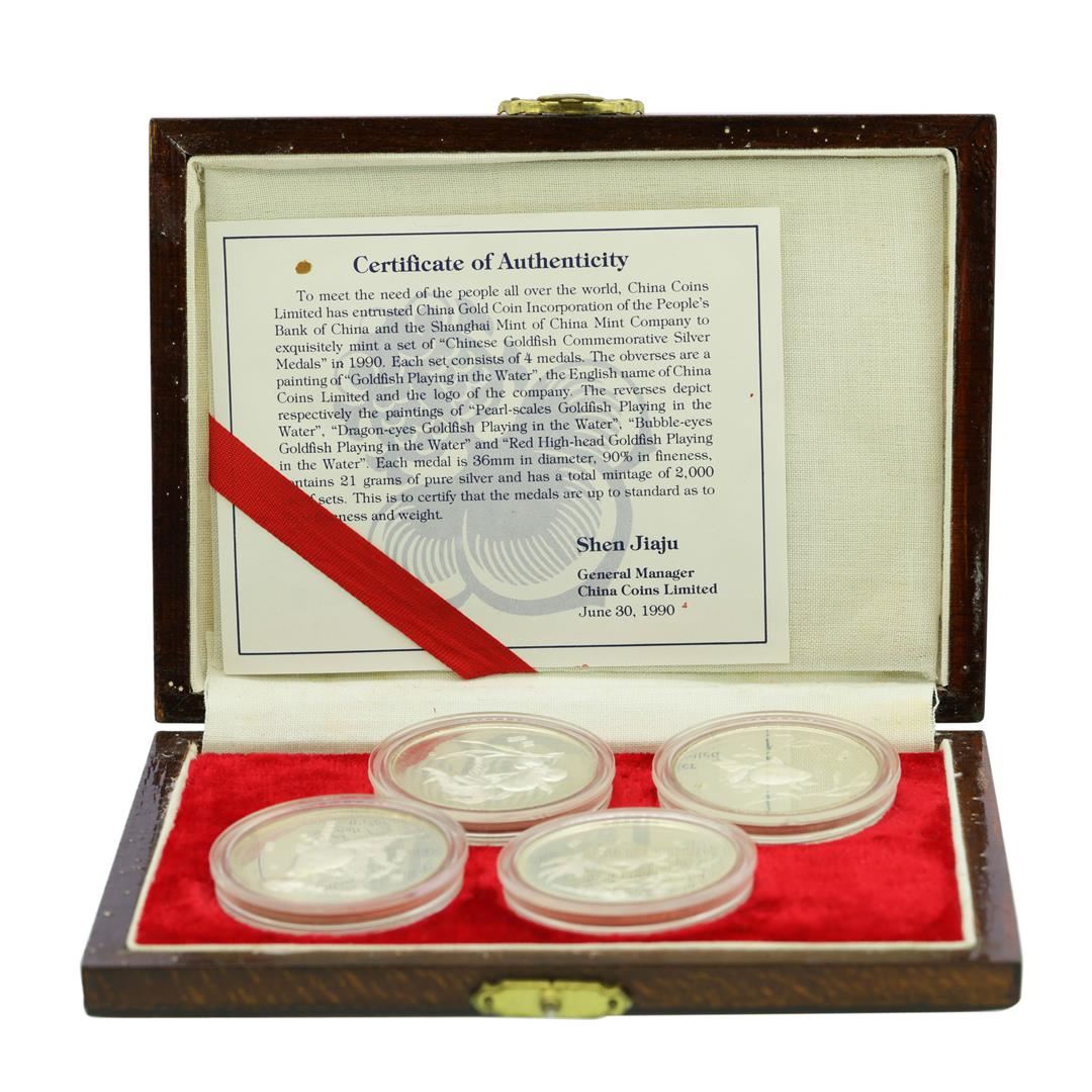 One 1990 China Goldfish (4) Piece Commemorative Silver Medal Set.