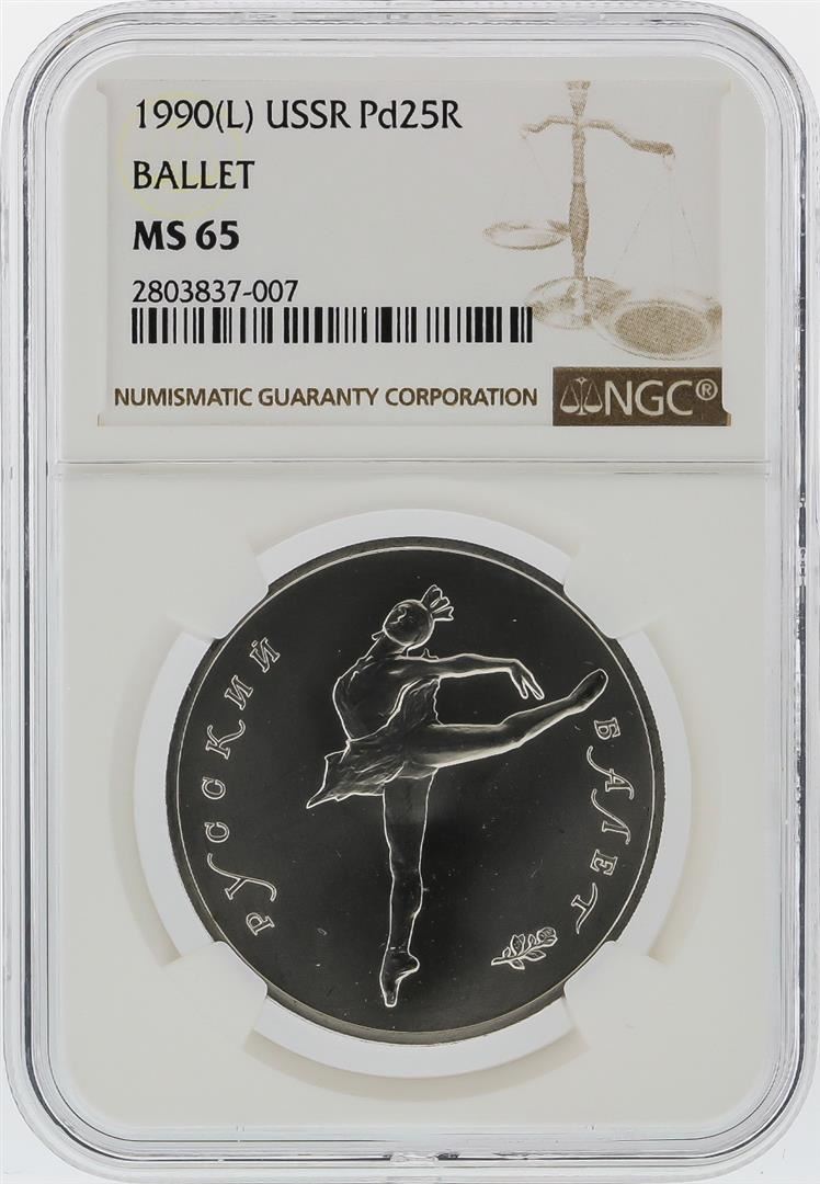 One 1990(L) 25 Roubles USSR Pladium Coin NGC MS65. NGC Certified.
