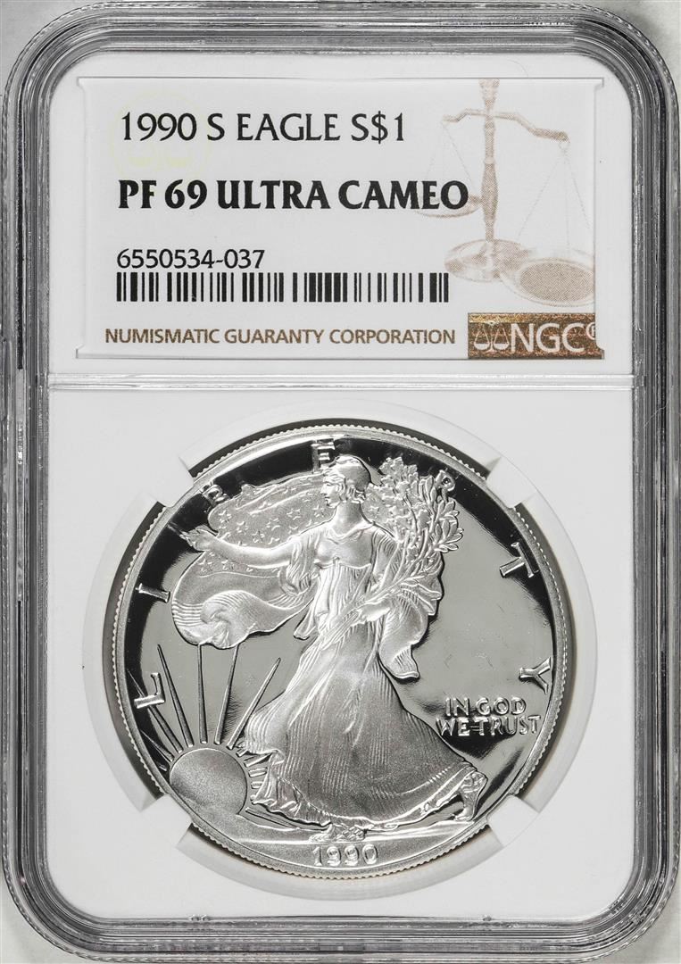 1990-S $1 Proof American Silver Eagle Coin NGC PF69 Ultra Cameo