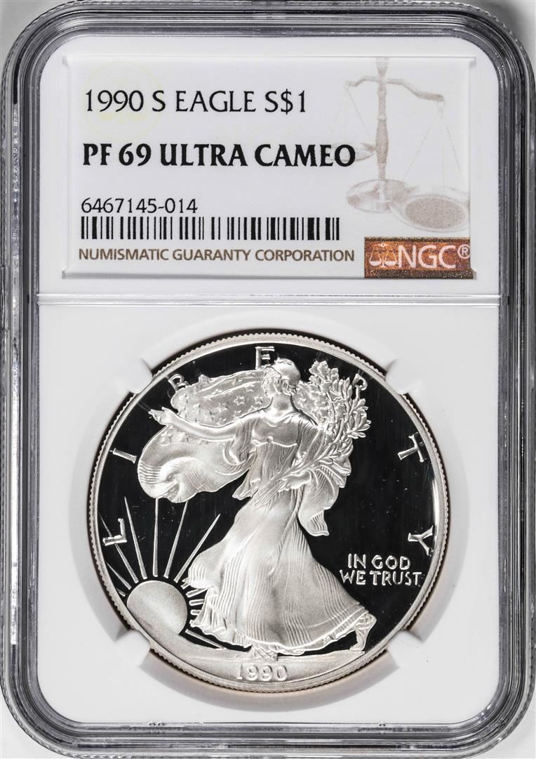 1990-S $1 Proof American Silver Eagle Coin NGC PF69 Ultra Cameo