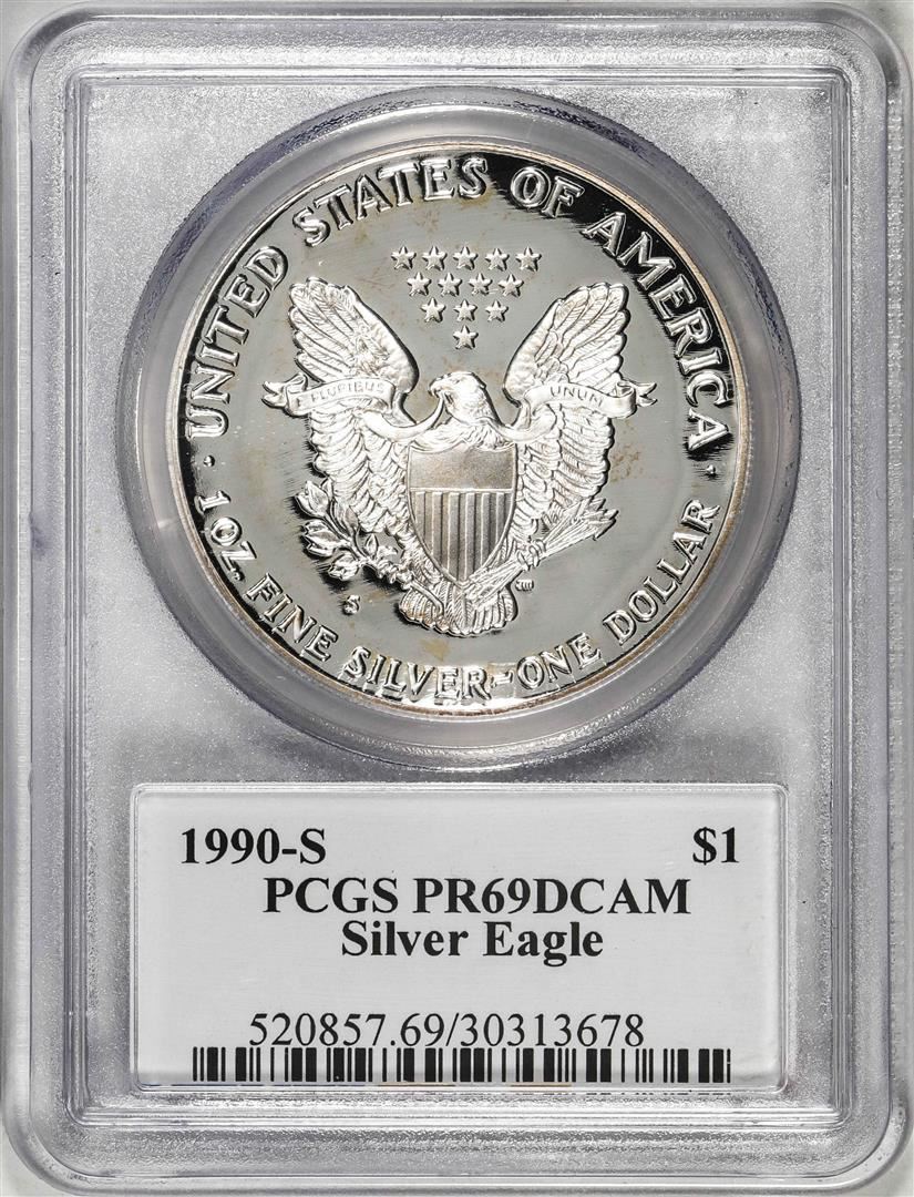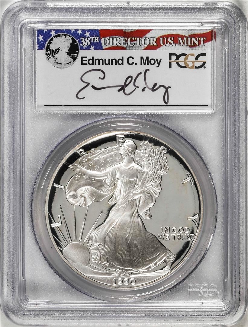 1990-S $1 Proof American Silver Eagle Coin PCGS PR69DCAM Edmund Moy Signature