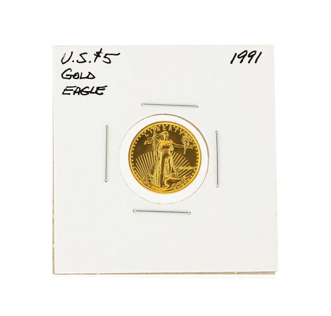 One 1991 1/10 oz. $5 Gold American Eagle Coin.