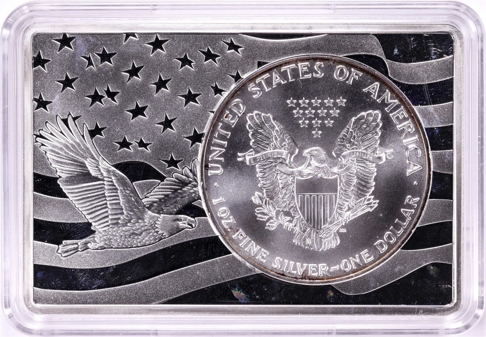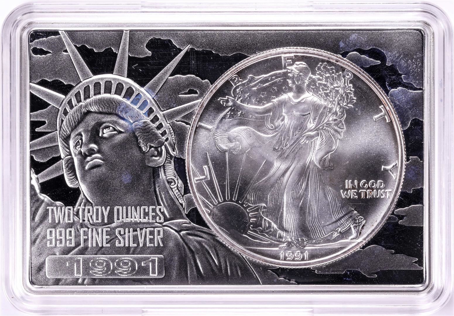 One 1991 $1 American Silver Eagle Coin & 2oz Silver Bar Set.