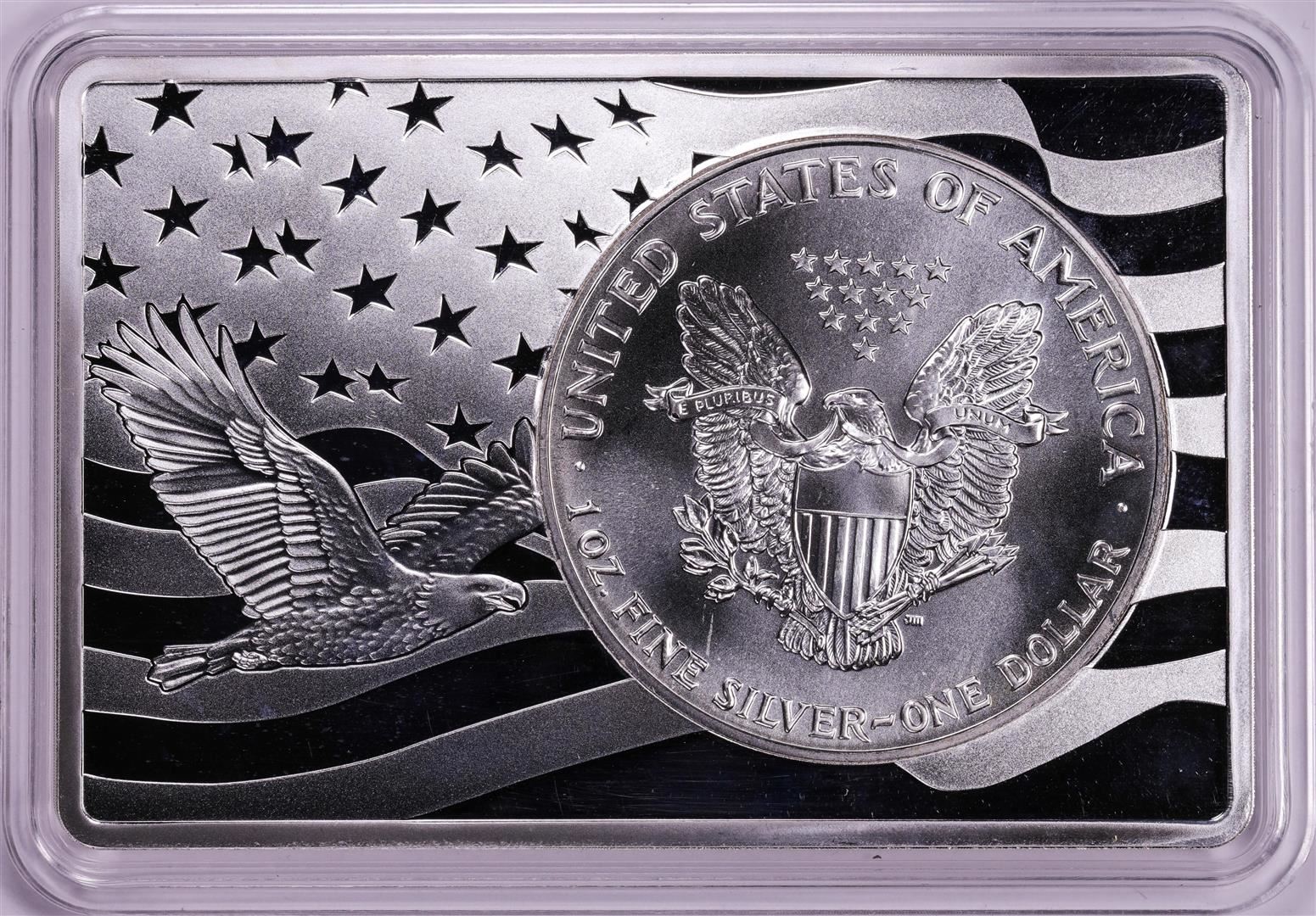 One 1991 $1 American Silver Eagle Coin & 2oz Silver Bar Set.