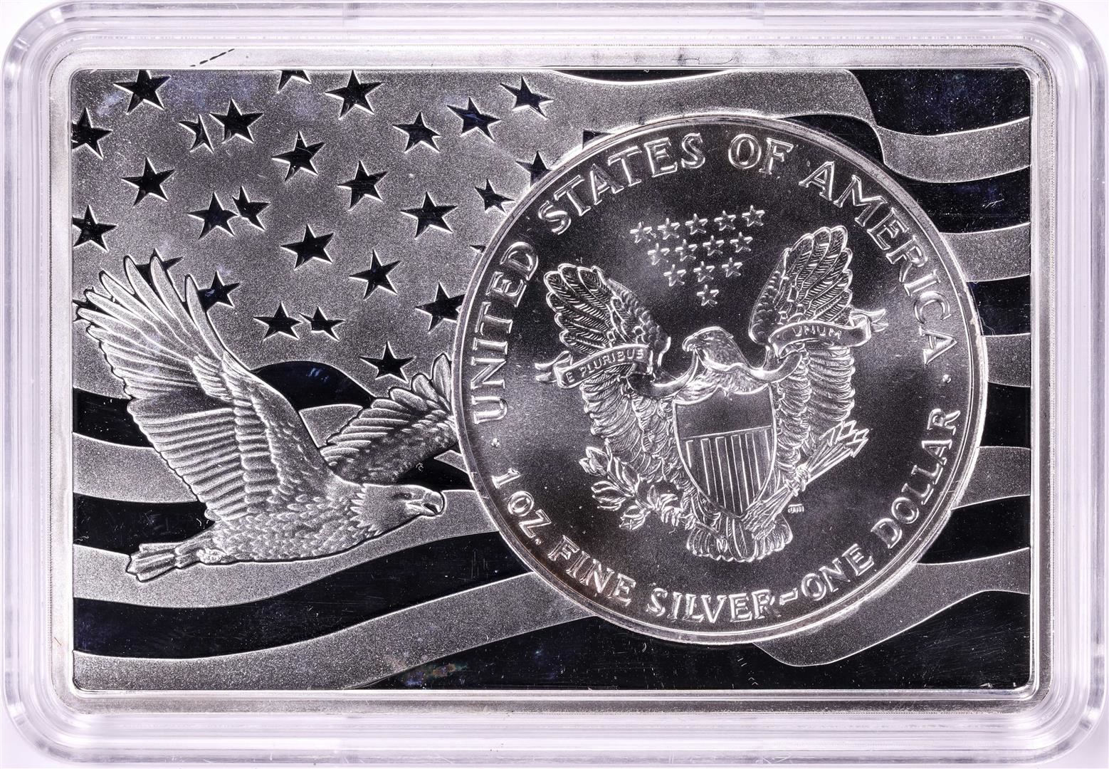 One 1991 $1 American Silver Eagle Coin & 2oz Silver Bar Set.