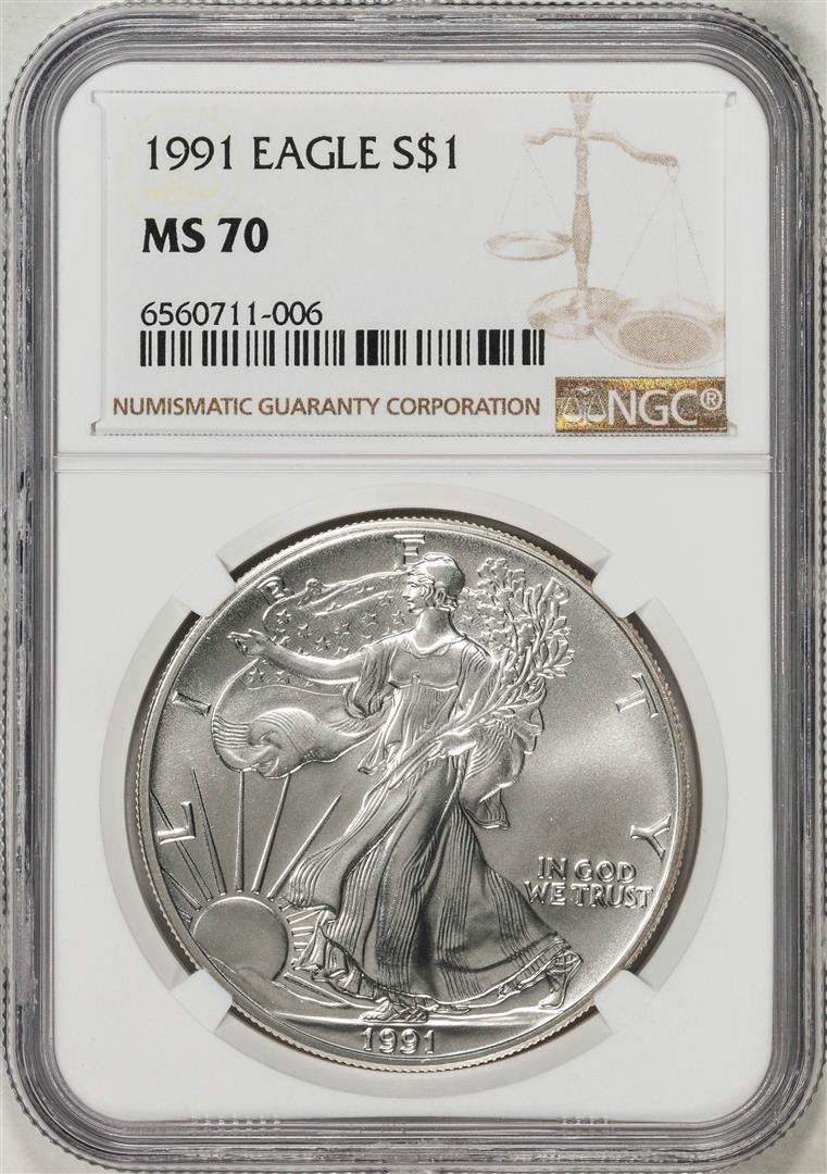 One 1991 $1 American Silver Eagle Coin NGC MS70. NGC Certified.