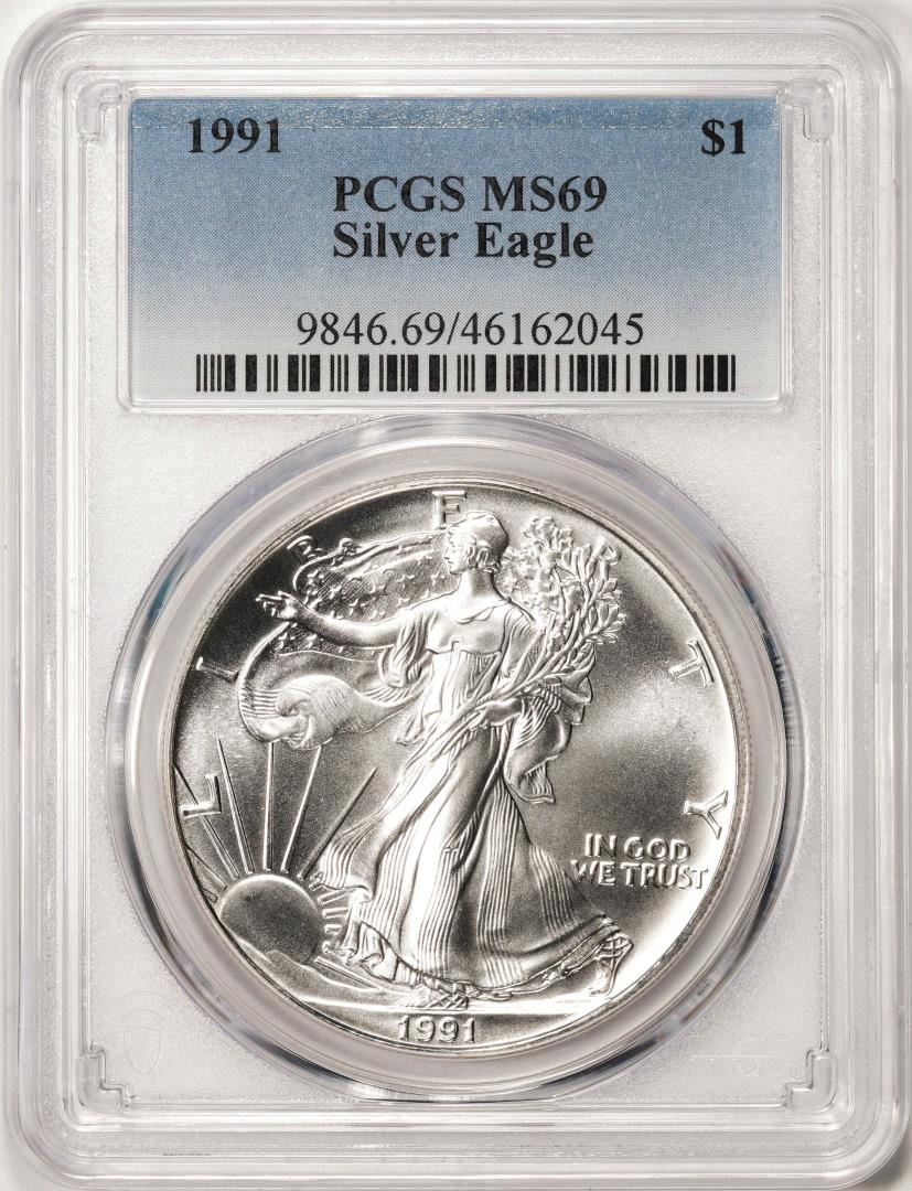 One 1991 $1 American Silver Eagle Coin PCGS MS69. PCGS Graded.