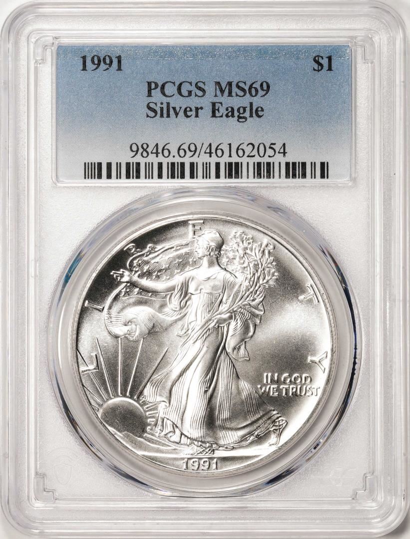 One 1991 $1 American Silver Eagle Coin PCGS MS69. PCGS Graded.