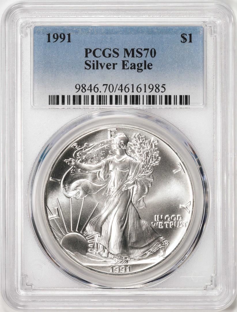 One 1991 $1 American Silver Eagle Coin PCGS MS70. PCGS Graded.