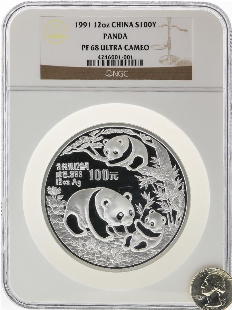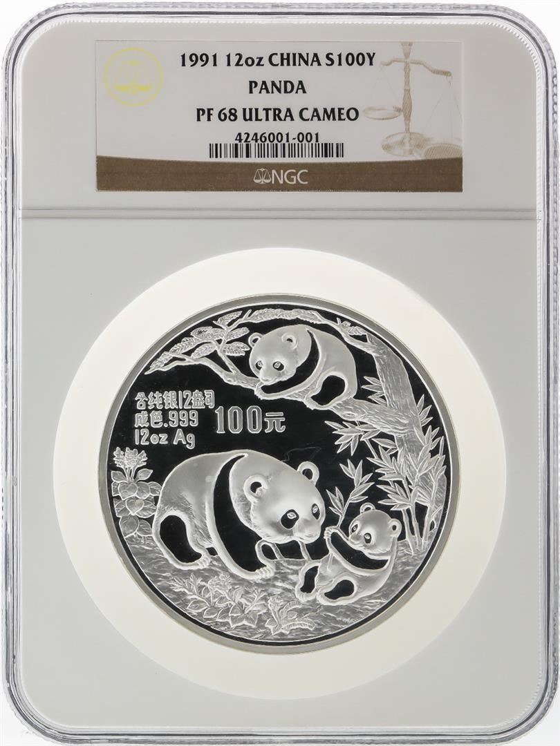 One 1991 100 Yuan China 12oz China Panda Silver Coin NGC PF68 Ultra Cameo. NGC Certified.