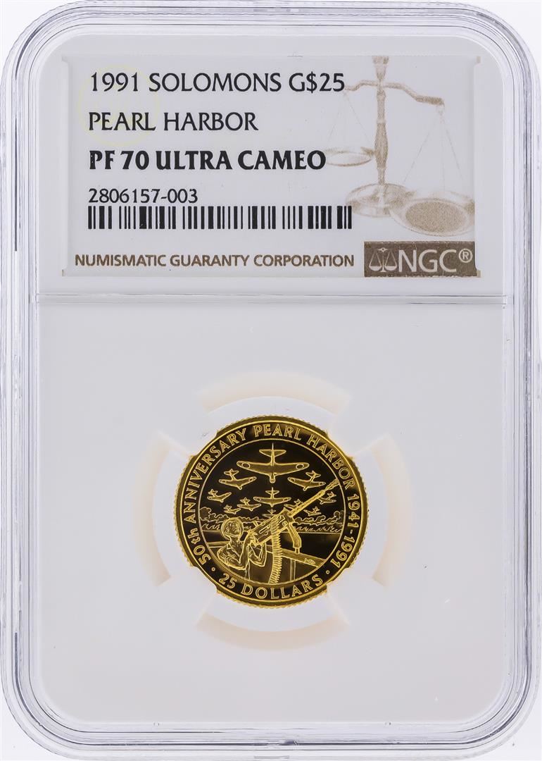 1991 $25 Solomons Pearl Harbor Gold Coin NGC PF70 Ultra Cameo