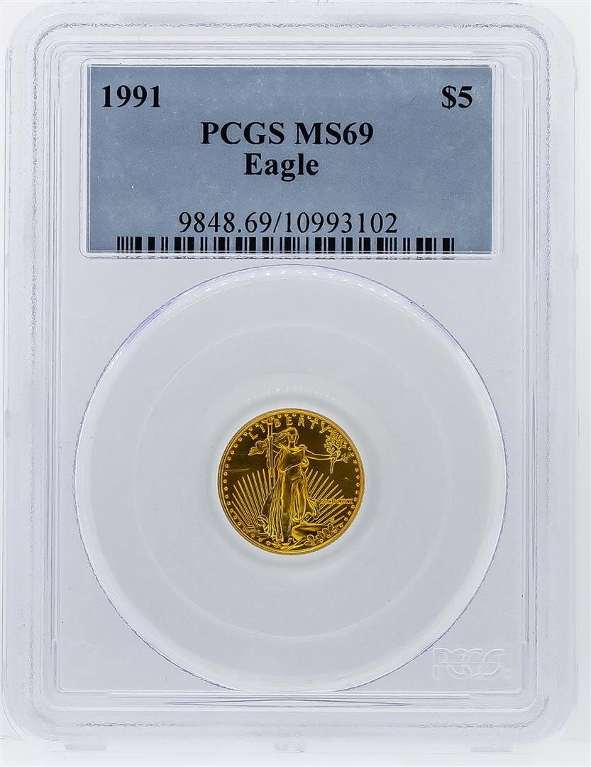One 1991 $5 American Eagle Gold Coin PCGS Graded MS69. PCGS Graded.