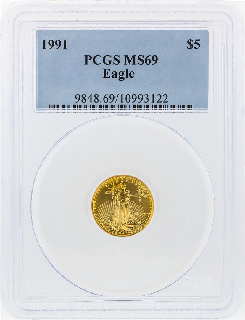 One 1991 $5 American Gold Eagle Coin PCGS Graded MS69. PCGS Graded.