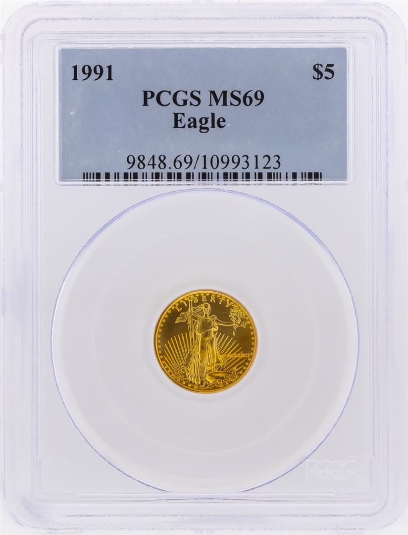 One 1991 $5 American Gold Eagle Coin PCGS Graded MS69. PCGS Graded.