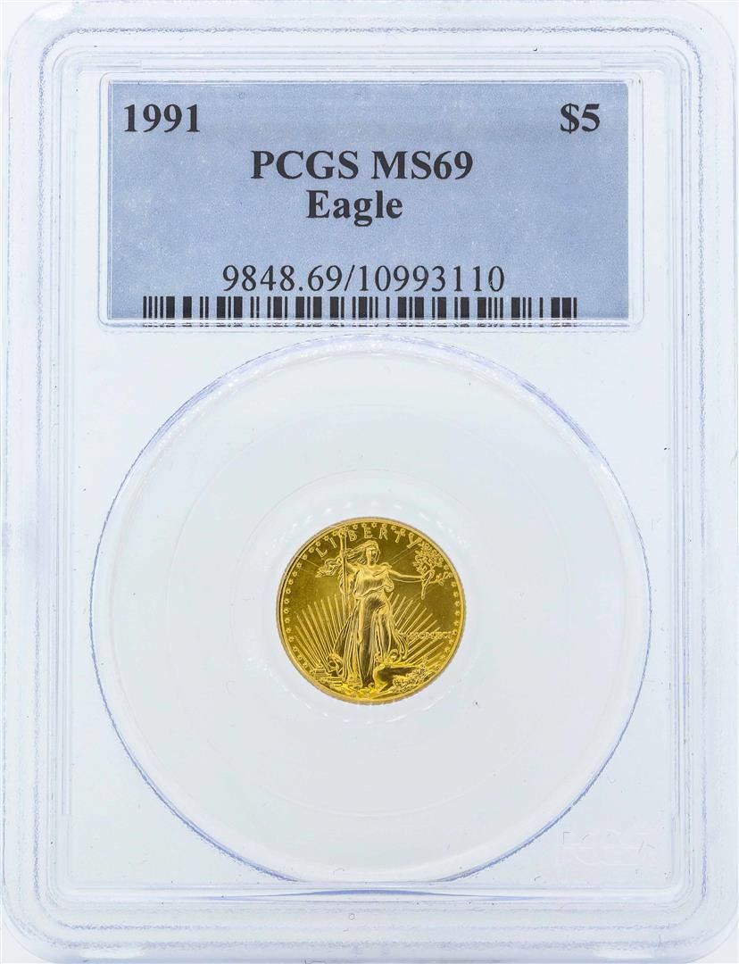 One 1991 $5 American Gold Eagle Coin PCGS MS69. PCGS Graded.