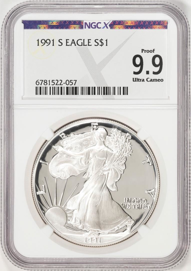 One 1991-S $1 American Silver Eagle Coin NGCX Proof 9.9 Ultra Cameo. NGC Certified.