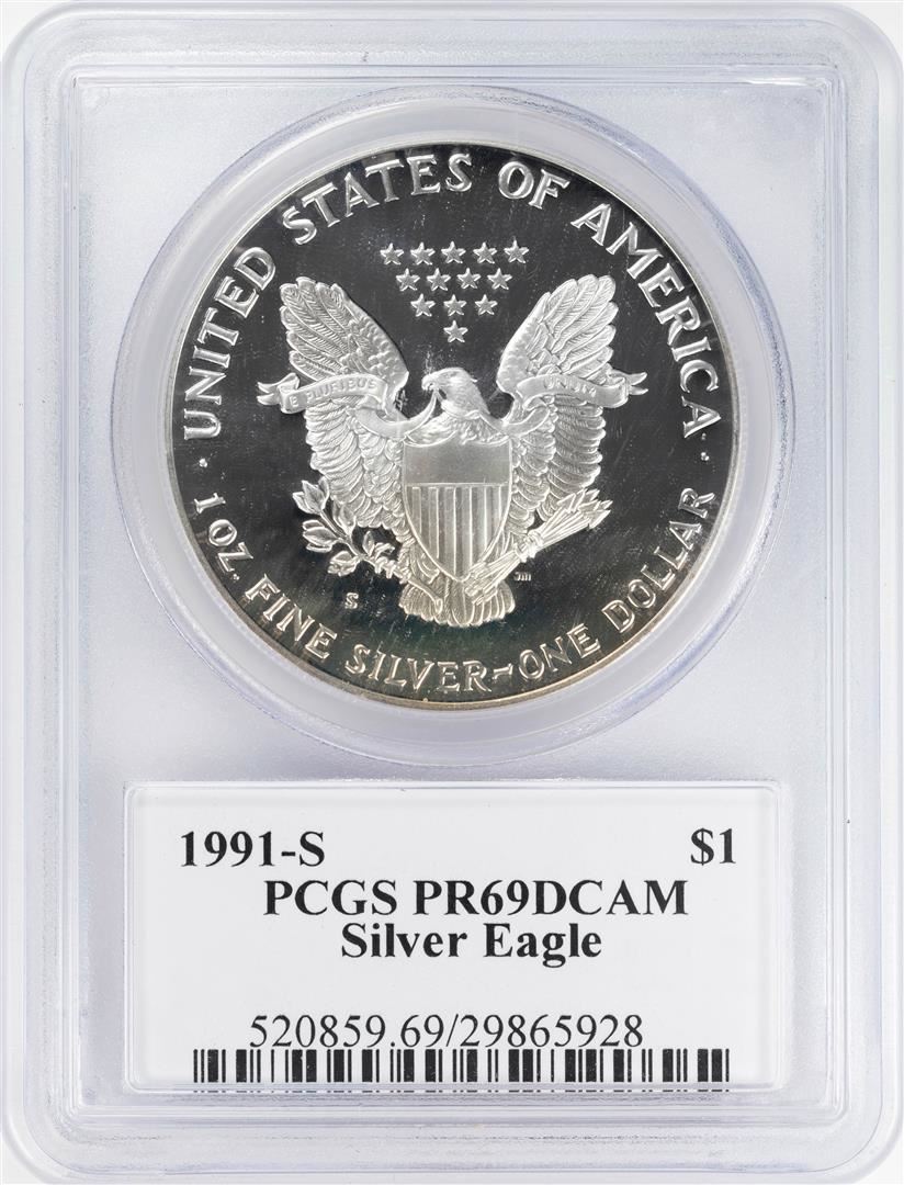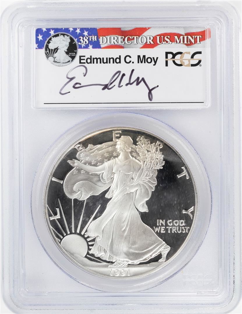 One 1991-S $1 Proof American Silver Eagle Coin PCGS PR69DCAM Moy Signature. PCGS Graded.