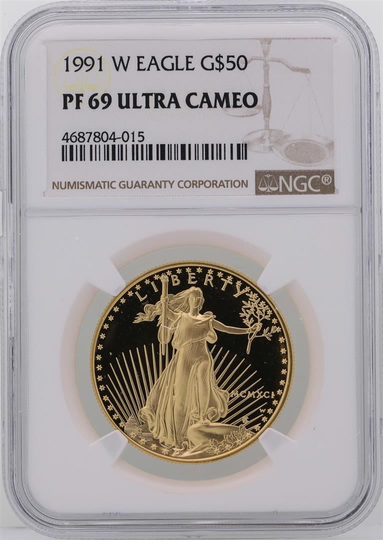 One 1991-W $50 American Gold Eagle Coin NGC PF69 Ultra Cameo. NGC Certified.