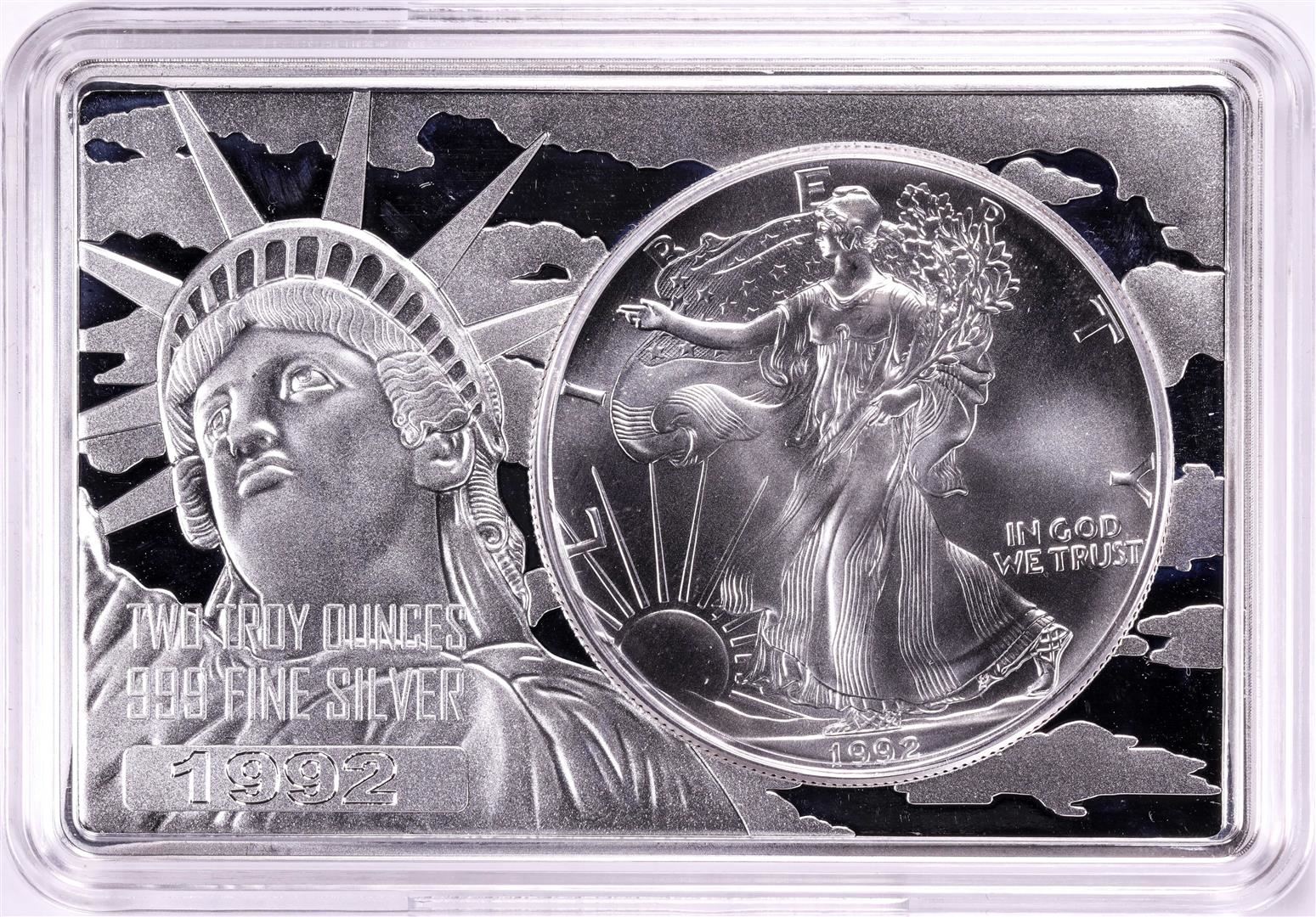 One 1992 $1 American Silver Eagle Coin & 2oz Silver Bar Set.