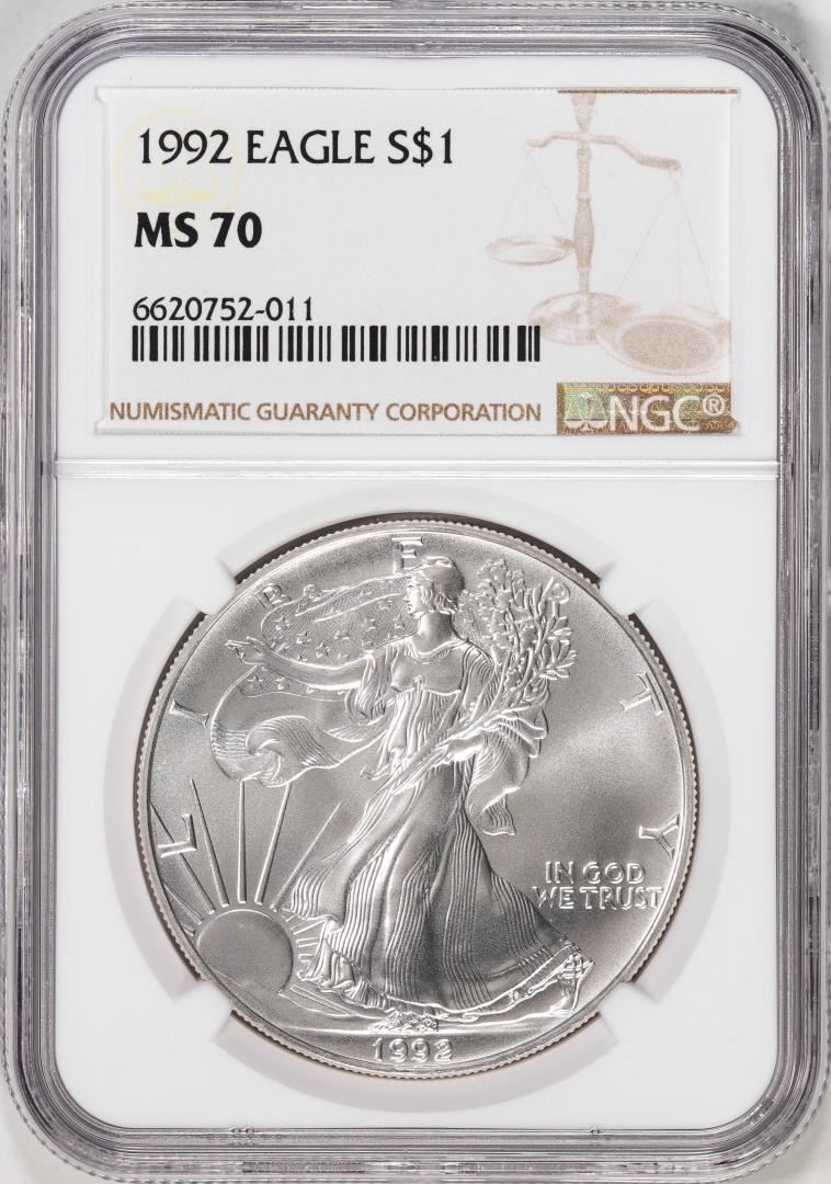 One 1992 $1 American Silver Eagle Coin NGC MS70. NGC Certified.