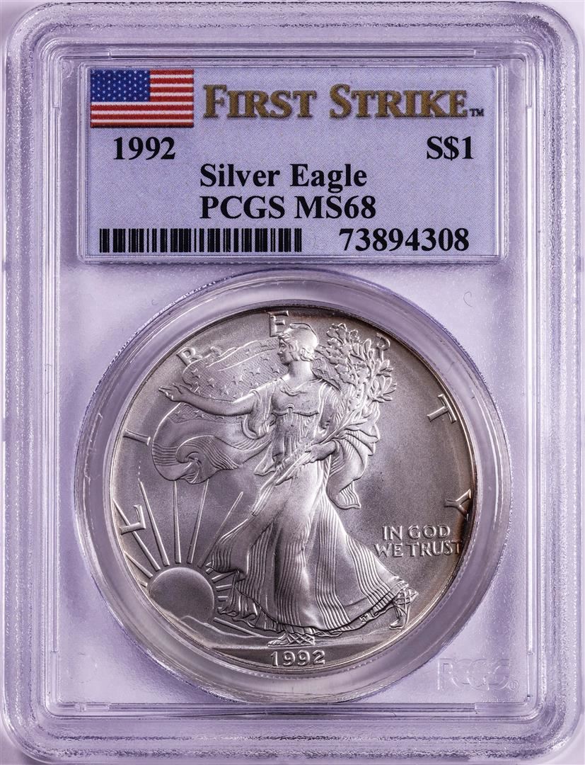 One 1992 $1 American Silver Eagle Coin PCGS MS68 First Strike. PCGS Graded.