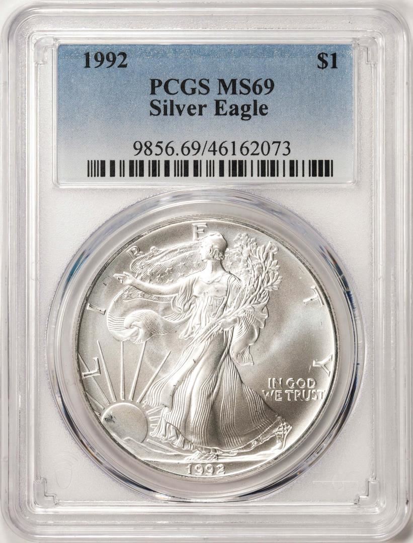 One 1992 $1 American Silver Eagle Coin PCGS MS69. PCGS Graded.