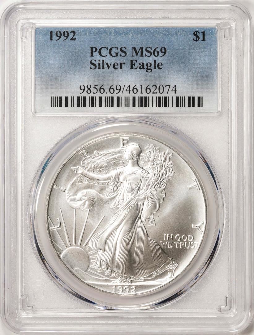 One 1992 $1 American Silver Eagle Coin PCGS MS69. PCGS Graded.