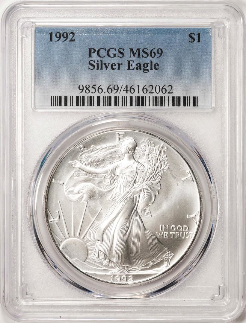 One 1992 $1 American Silver Eagle Coin PCGS MS69. PCGS Graded.