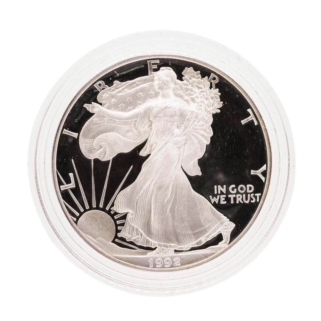One 1992 $1 American Silver Eagle Proof Coin w/ Box and COA.