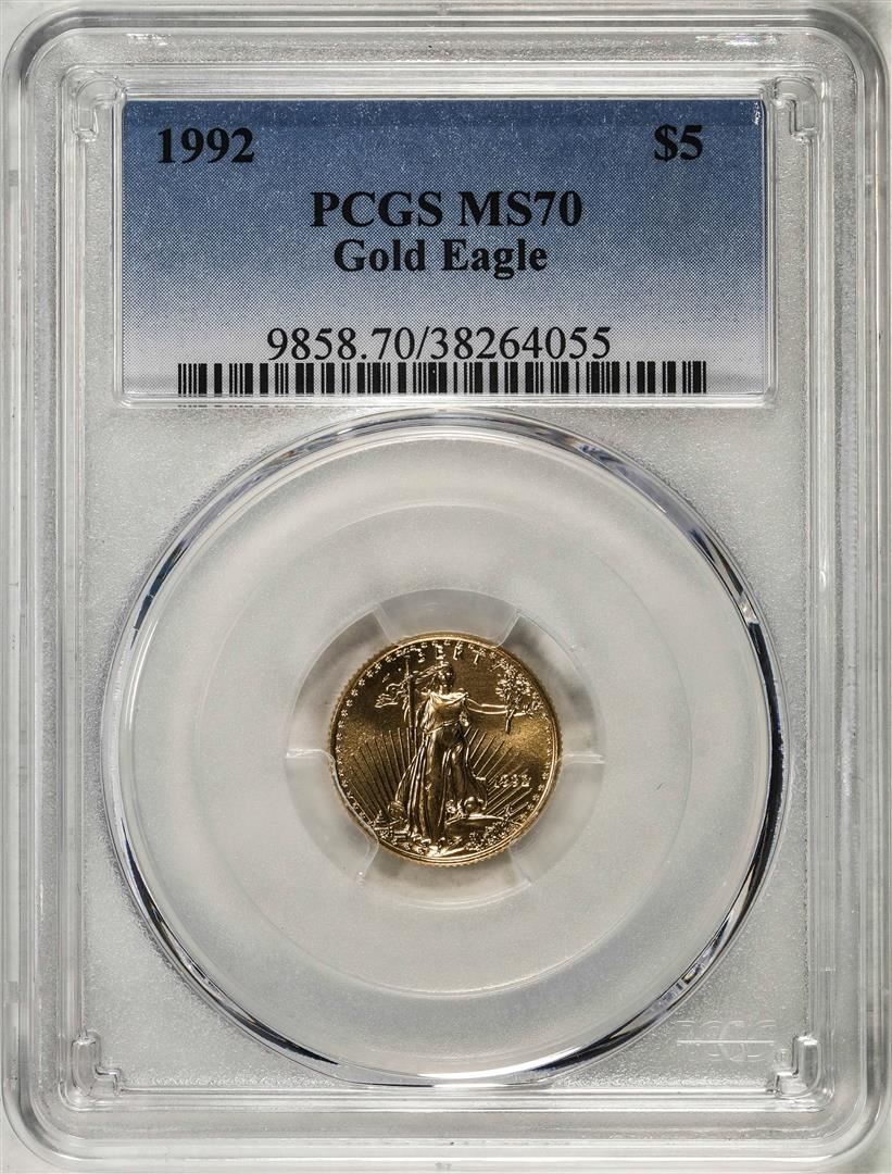 One 1992 $5 American Gold Eagle Coin PCGS MS70. PCGS Graded.