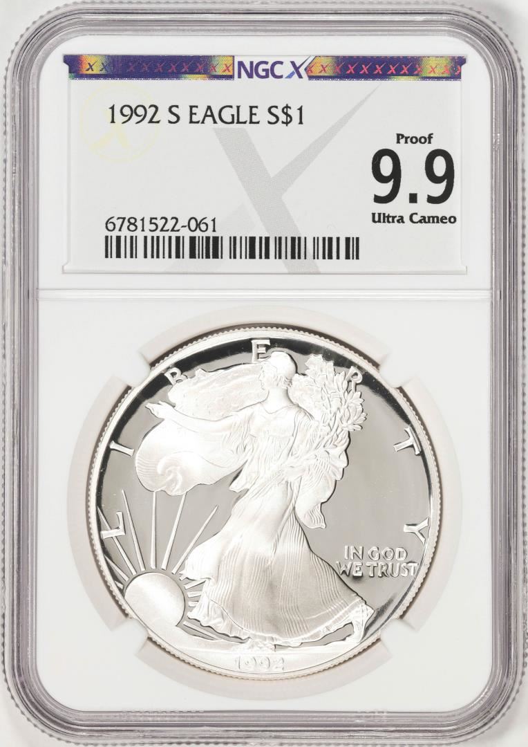 One 1992-S $1 American Silver Eagle Coin NGCX Proof 9.9 Ultra Cameo. NGC Certified.