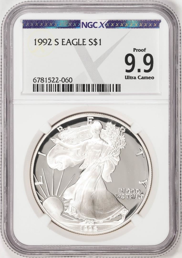 One 1992-S $1 Proof American Silver Eagle Coin NGCX Proof 9.9 Ultra Cameo. NGCX Certified.
