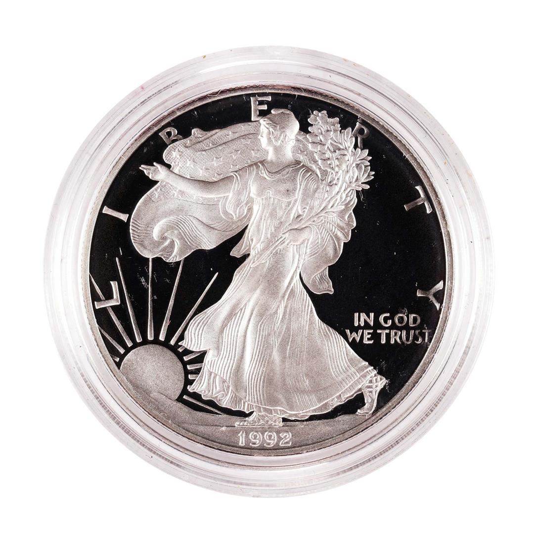 One 1992-S $1 Proof American Silver Eagle Coin.